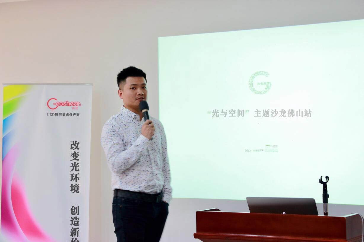 2018年3月30日, Geosheen极成光电联合HUAHE花盒信息化管理系统、《id+c室内设计与装修》杂志在佛山中国陶瓷总部成功举办以“光与空间”为主题的设计沙龙。英国大可莱伊照明设计事务所合伙人郭明卓女士,Geosheen极成光电设计经理丁守国、产品经理王磊,江铭深、伦家炘、莫玉良、彭达敦、高一鸣、刘雅丽、谭进勇、张志强、张国文、谢雄才、陈春萍、张础天等100余位佛山设计界人士与会,共话光与空间。