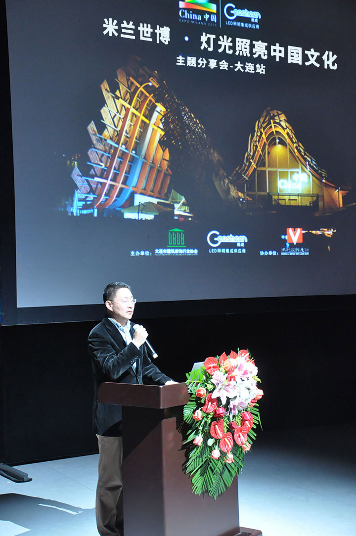 “米兰世博·灯光照亮中国文化”主题分享会上,大连市建筑装饰行业协会常务副会长兼秘书长孙普先生代表主办方欢迎到场的各位嘉宾。他代表大连建筑、装饰、设计行业对此次分享会举办的意义表示肯定和感谢,希望能通过此次分享会大家能认识到灯光可以让空间更有层次变化,营造不同主题风格的空间氛围,并不是简单的点亮。