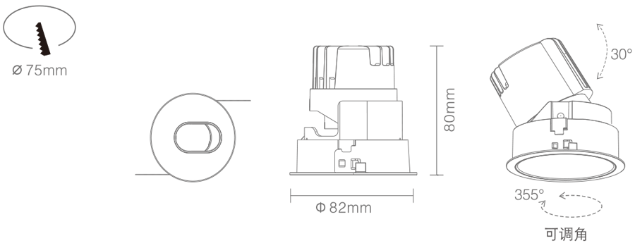 3. Clearance around light fting to be alowed for angular adjustment;保留足够空间以便灯具可作调节角度;