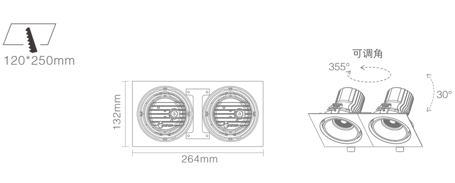 3. Clearance around light fting to be alowed for angular adjustment;保留足够空间以便灯具可作调节角度;