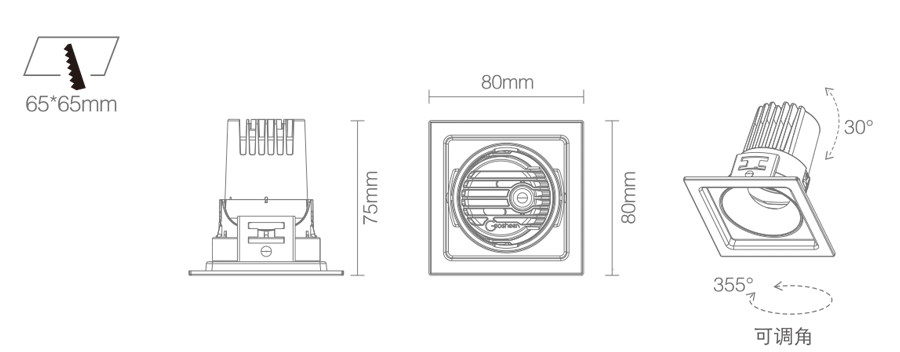 3. Clearance around light fting to be alowed for angular adjustment;保留足够空间以便灯具可作调节角度;