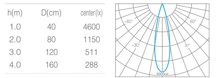 • 光束角15°