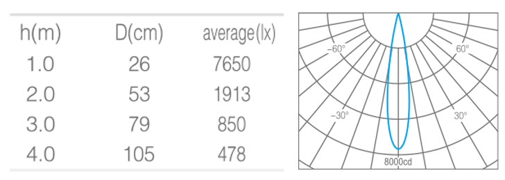 • 光束角15°