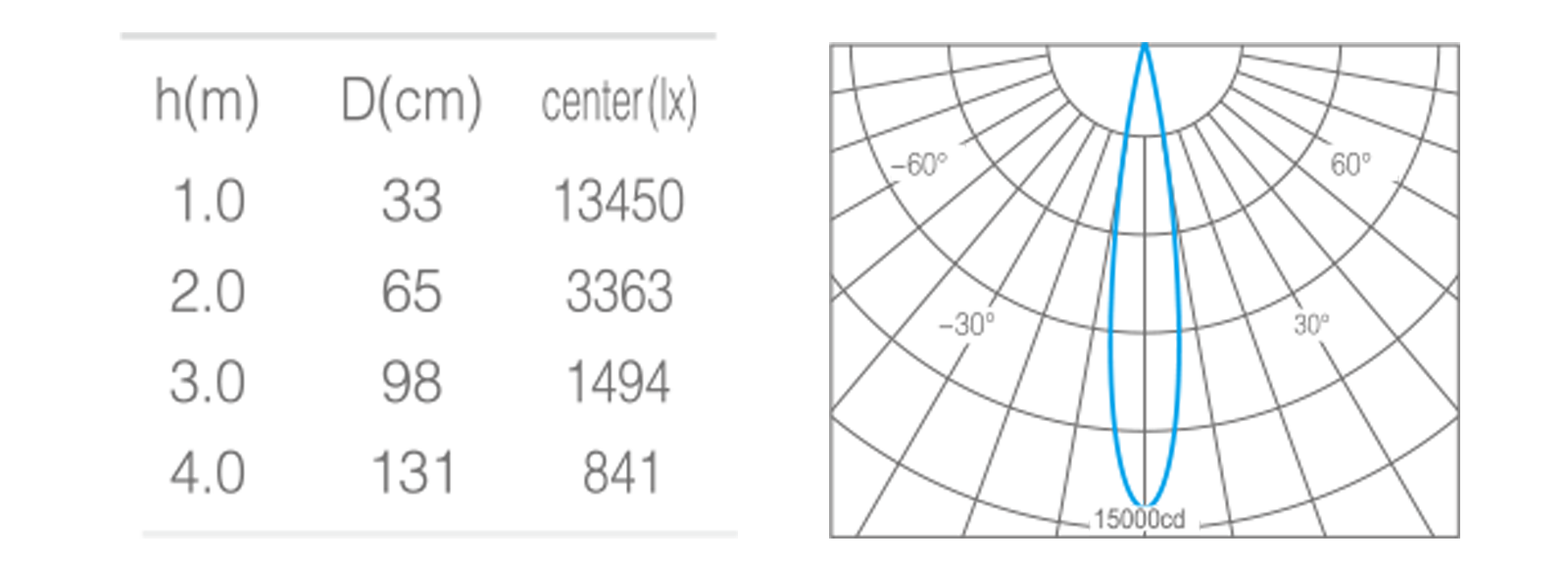 • 光束角15°
