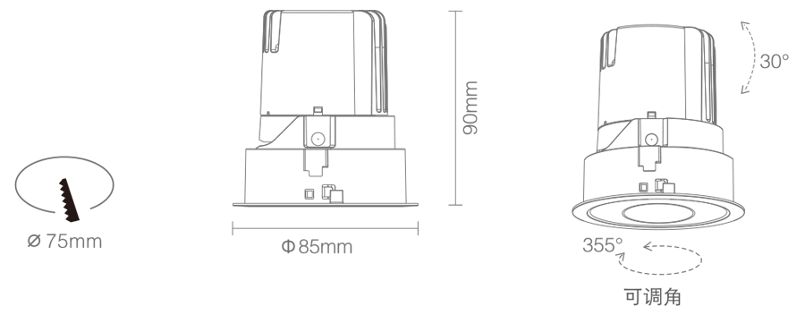 3. Clearance around light fting to be alowed for angular adjustment;保留足够空间以便灯具可作调节角度;