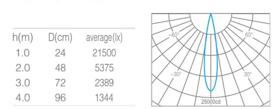 • 光束角15°°