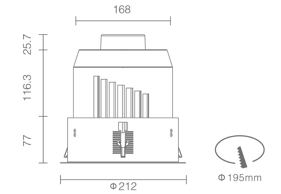 • 开孔尺寸195mm