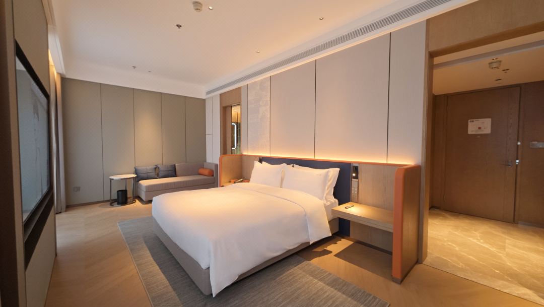 客房是客人在酒店内停留时间最长的空间,作为旅人心灵栖息的港湾,酒店精心雕琢着客房的每一寸空间,力求将简约与时尚并蓄,编织成一幅既现代又不失温馨的居住画卷。在这里不仅能享受到国际标准的住宿体验,更能享受到宾至如归的服务,感受到家一般的温暖与舒适。