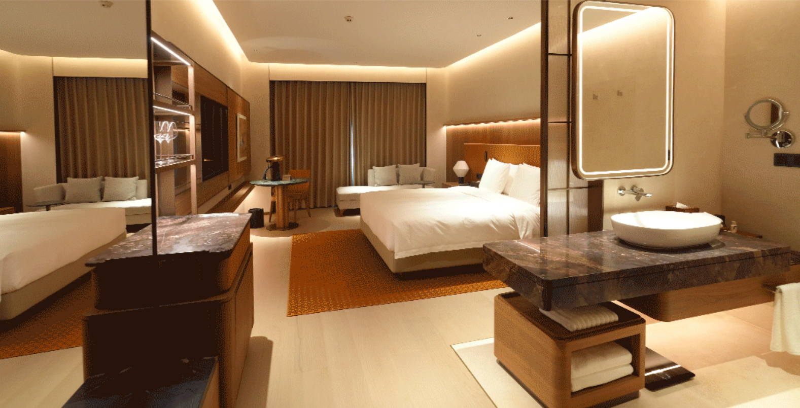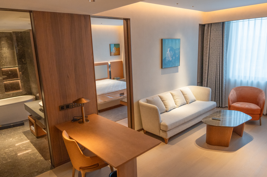 采用Geosheen极成2400K软灯带营造的氛围光和2700K超防眩效果的天花灯,避免刺眼的光线。客房内,每一寸空间都散发着温暖的光芒,让客人仿佛沉浸在温馨的温床,体验宾至如归的感觉。