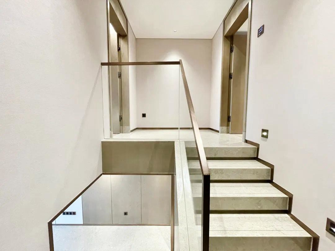 560㎡户型,约23米壮阔观海面宽,深圳湾海景一览无遗;约12米宽轩敞双厅,纳藏不凡气度;豪华全套房设计,独立卫浴,打造塔尖私属领域;约77m隐藏式主卧套房,臻享私密与从容;专属双梯双门入户,私享尊崇归家礼遇。客厅采用采用Geosheen极成五头格栅灯,这款灯具以其迷你精巧的结构和独特的防眩光设计,巧妙地融入了室内空间。条形灯具与天花线条造型交相辉映,简洁流畅的线条与鲜明的角度相互交织,宛如一幅精美的画卷。在这样的光影交织下,整个客厅仿佛被赋予了新的生命,视觉感得到了极大的提升,让人仿佛置身于一个充满艺术气息的空间之中。