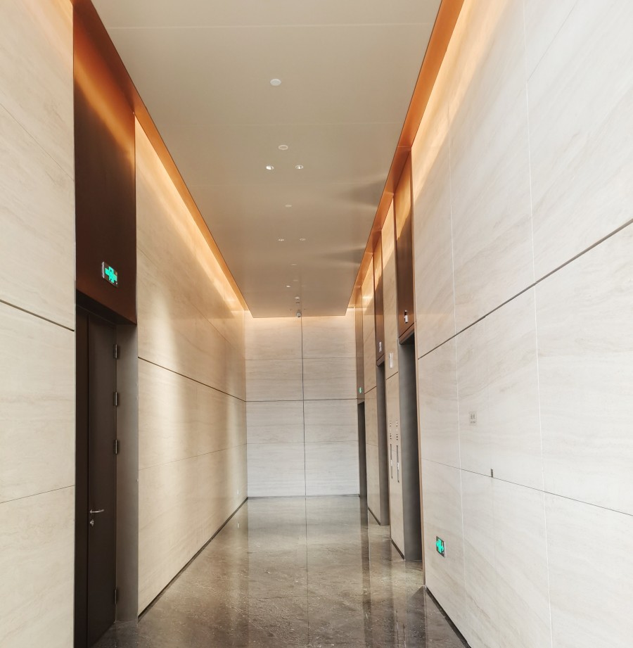 高效,开始于优于国际设计标准的锋速电梯,先人一步体验,为智慧办公加速。电梯选用原装进口,平均等候时间s20秒超过甲级写字楼优秀水平。在这短暂的停留空间,运用专业灯光营造一种高级、舒适的甲级商务空间。
