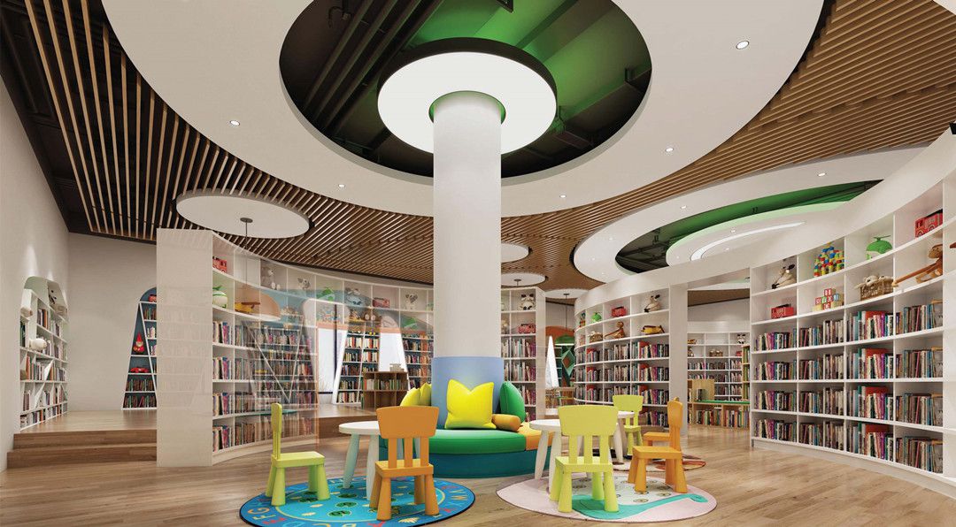 图书馆三楼设置了亲子阅读室,给家长提供陪伴孩子成长进步的舒适场所。阅览室共摆放了8300余册绘本和少儿读物,让小朋友们在安静的环境里,浸润在书香的美好世界,与爸爸妈妈享受快乐的亲子时光。阅读室的灯光选择接近自然光效的色温的灯具,提高学习的舒适性和保护视力。