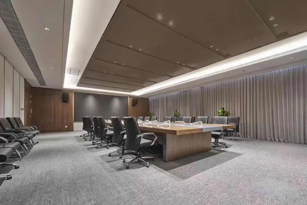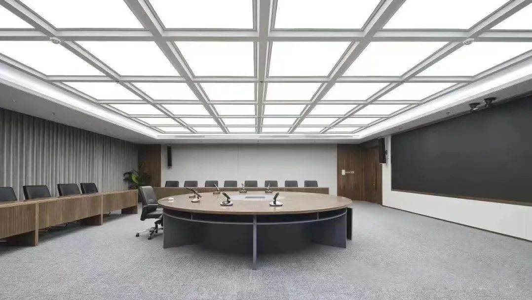相比于开敞办公区,会议室的灯光设计更具艺术气质