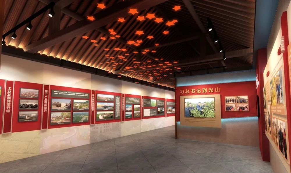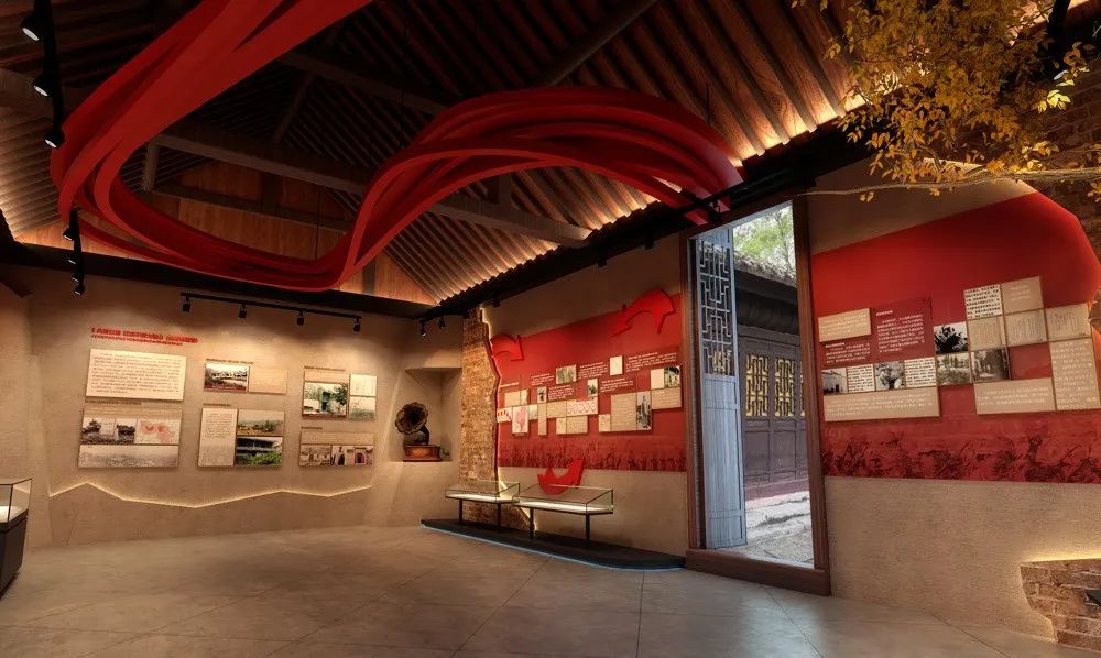馆内散发着浓厚的红色气息整体墙壁与配色