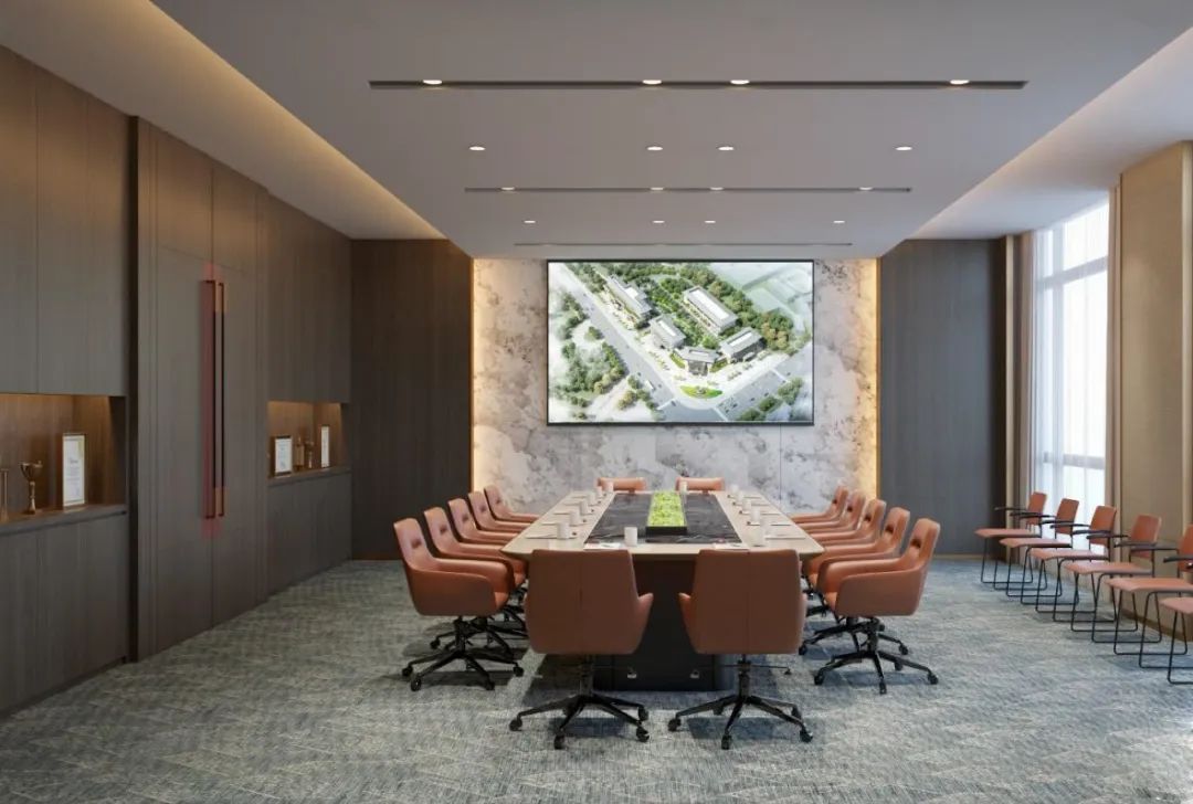 会议室采用素雅大气的背景墙颜色,自然和宁静、互动与融合,在明亮干净的空间内加了几分静谧沉稳,让空间拥有无限的包容性,适合来一场思想上的碰撞。