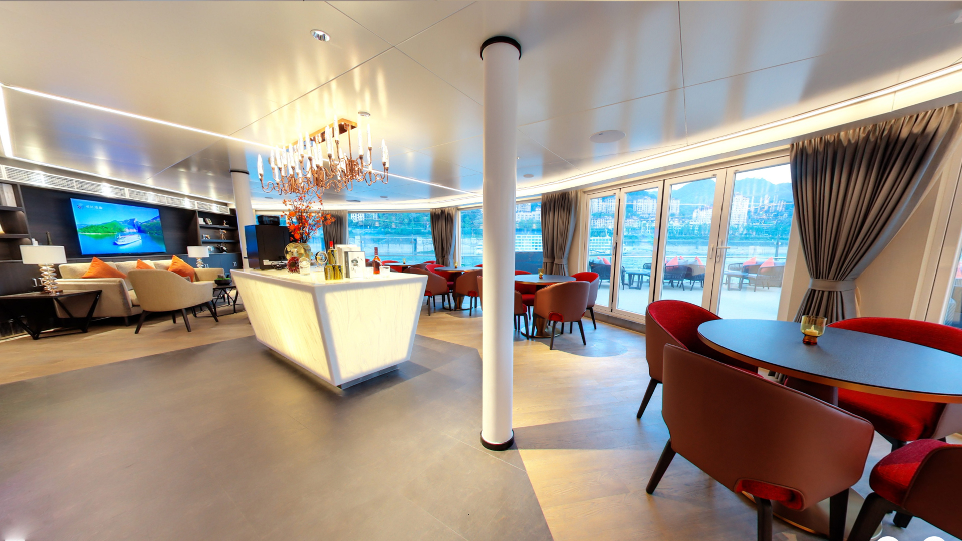 5楼的切尔斯酒吧,设计上摒弃了长江游轮