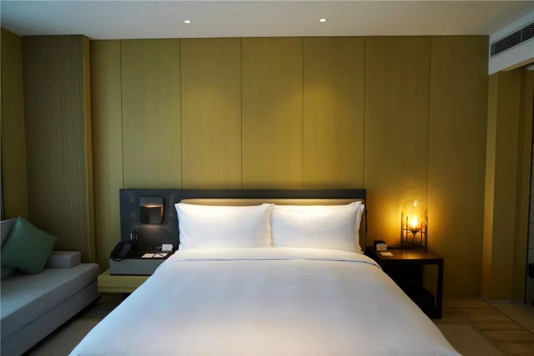 客房的照明设计尤其注重友好的住客体验和舒适的居住感受。客房内光影设施齐全,暖色系装饰材料在暖色灯光氛围烘托下,更显空间的舒适。如此精心打造了舒适宜居的环境,使入住者更容易获得身心的放松。