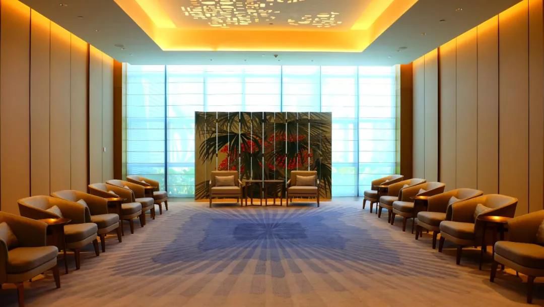 宴会厅和会议厅的照明大量使用漫反射和间接光,给客人提供了一个格外柔和放松的空间。宴会厅通过变色的不规则拉膜天花和暖色灯光氛围的演绎,赋予宴会厅轻柔浪漫的格调。