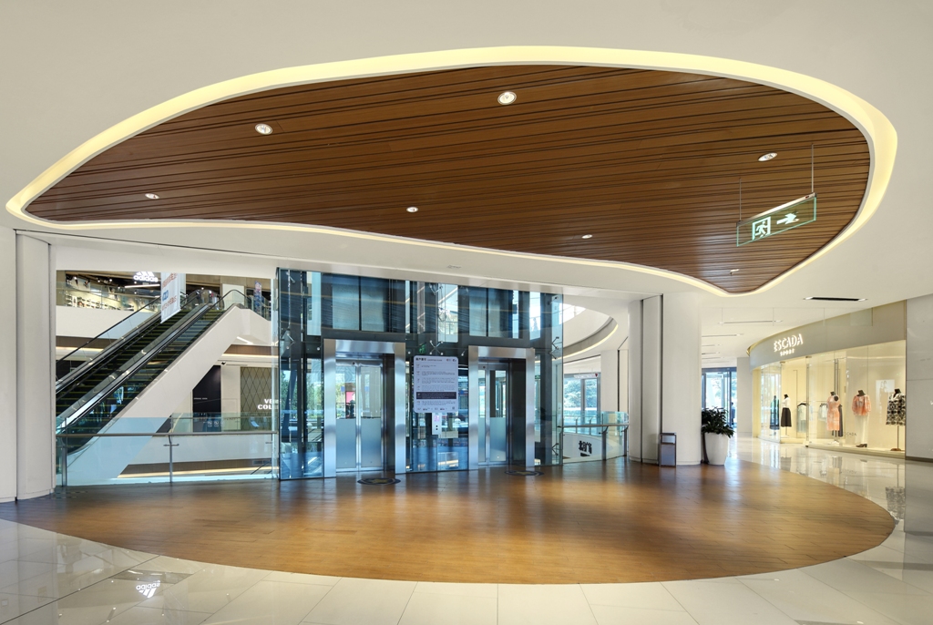 这不仅满足了电梯区域的功能照明,而且创造了闲庭信步的环境氛围,安抚消费者等候电梯的情绪。
