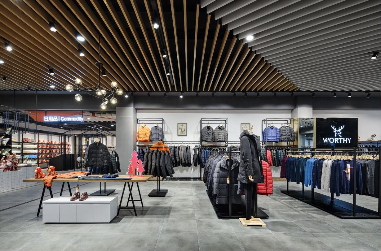鹿易优品店铺由男装区、女装区和生活超市三个区域组成