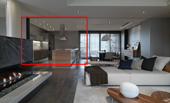 图:整体+局部,除整体环境光外,对厨房的料理台和水槽等局部增加补充照明。
