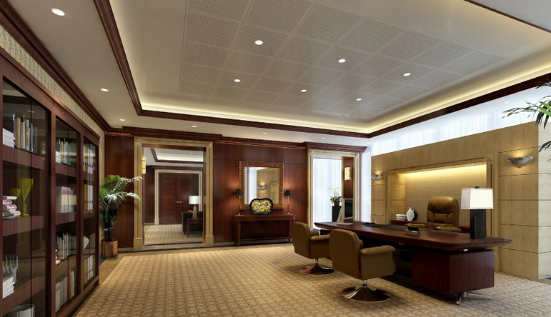图:采用间接照明的处理手法,利用天花暗藏光源为书桌提供环境光,有效避免灯光直射所造成的眩光,同时安置的隐藏式光源,能有效烘托出书房沉稳的氛围(来源:Geosheen极成应用案例)。