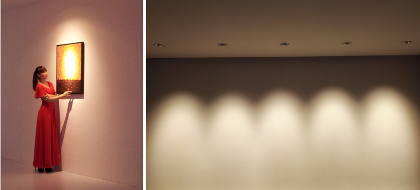 2、精准的光束:左图的展示,有基础、有重点,吸引力强。右图灯具的光束角过大,只有基础照明,没有重点照明,缺乏视觉吸引力。