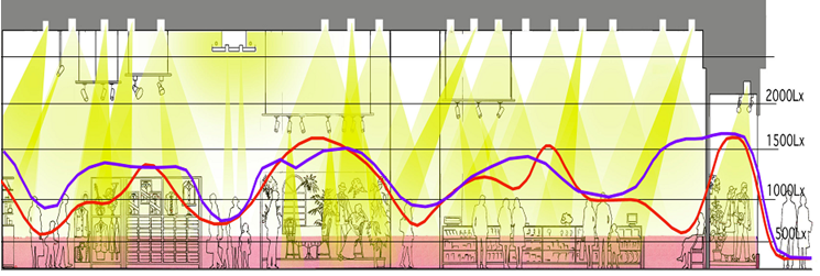 有时,高档的商品、高档的店铺、高档的装修,却配以低劣的照明,强烈的眩光使人无法停留。