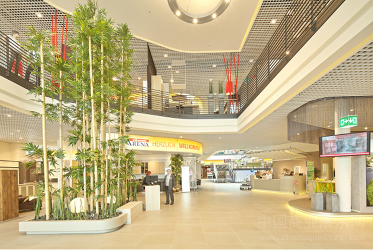 图:德国KüCHENARENA橱具卖场设计,嵌入式的灯光和流线型灯带让整个店铺空间档次提升不少