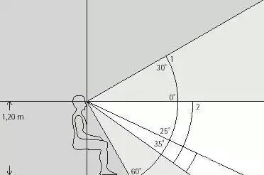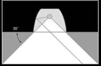 图:人眼正常的注意视线范围是平视上方30°到下方60°,在这个范围内出现刺眼的光线,就是眩光