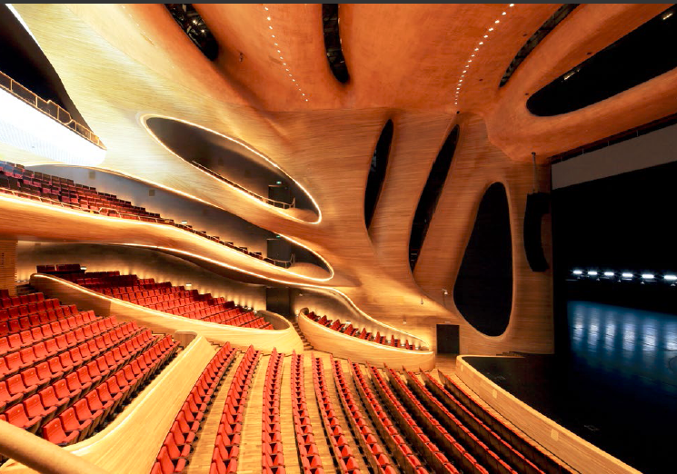 哈尔滨大剧院MAD选择的水曲柳拼接线性质感,木与线条的气息真的为空间带来了“乐器内腔”的感受。